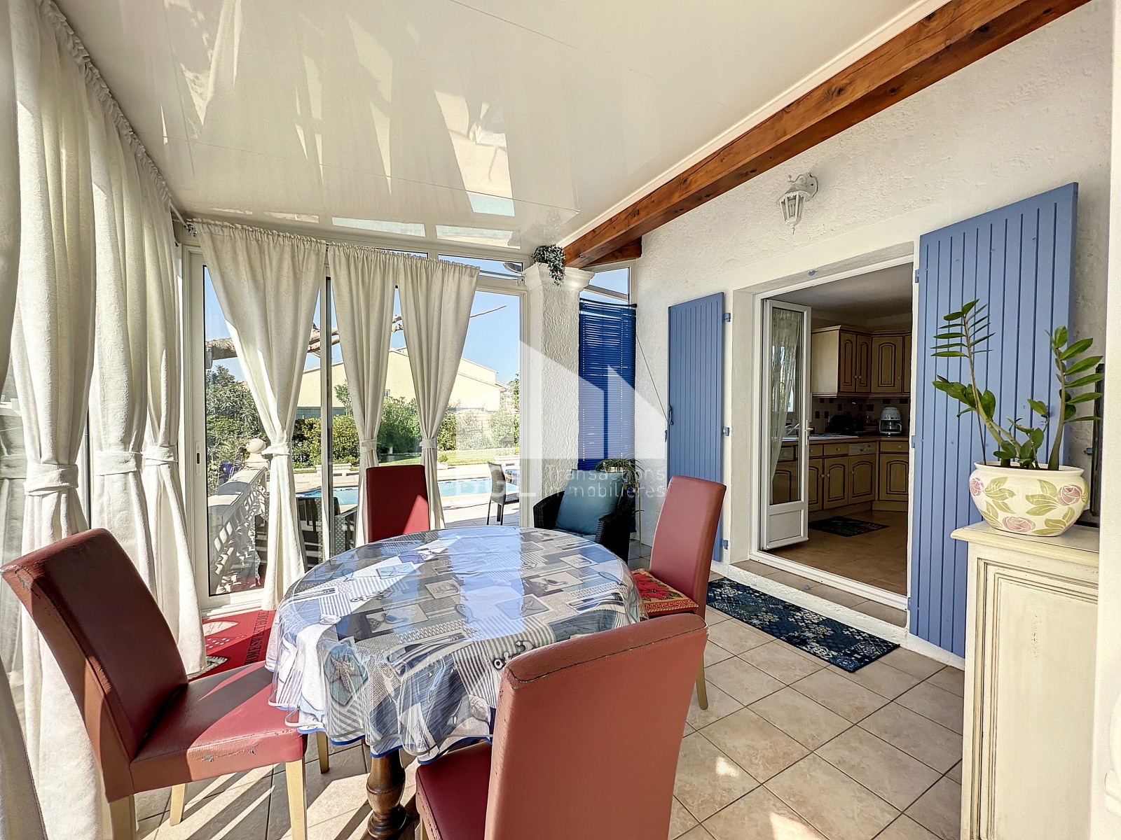Edifiée dans les années 2000, elle vous séduira par ses aménagements de qualité. Climatisée, elle dispose de trois chambres, de deux salles d'eau, d'une cuisine néo-provencale bien équipée, et d'un séjour lumineux donnant sur la grande véranda