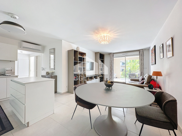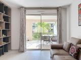 Excellentes prestations pour cet appartement de 67 m² avec deux chambres à vendre en rez de jardin d'une résidence avec piscine, prisée, proche des commodités du quartier du Pin à Bormes les Mimosas.