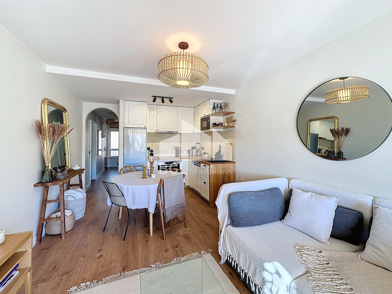 Situé au cœur de la Favière, ce charmant T2 cabine entièrement rénové et traversant vous offre de généreux volumes. Il se compose d'une agréable pièce de vie ouverte sur la terrasse exposée à l'est, d'une chambre avec dressing au calme donnant sur une loggia, d'un coin cabine avec fenêtre,d'une salle d'eau et d'un WC séparé. Ce bien climatisé et agencé avec goût et vendu avec son garage en sous-sol de 15 m2,ce qui est un atout supplémentaire considérable.