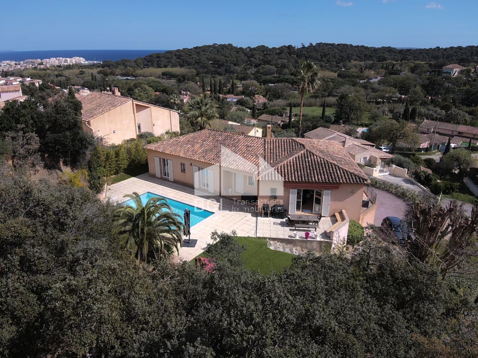 L'Agence BGL Transactions immobilières a vendu cette maison avec vue mer et piscine.