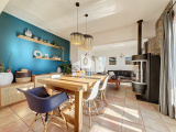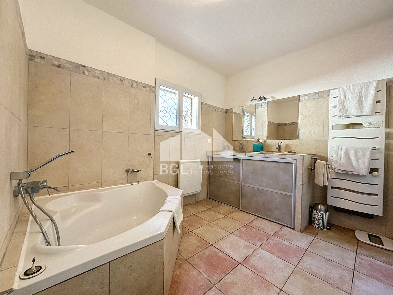 Cette résidence paisible et sans aucun vis-à-vis, offre une spacieuse pièce de vie avec cheminée, trois chambres dont une suite parentale, une salle de bains et une cuisine. En complément, une grande suite parentale indépendante, une piscine exposée plein sud, ainsi que deux garages sont à votre disposition.