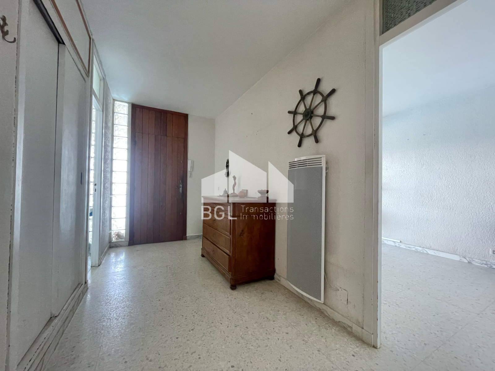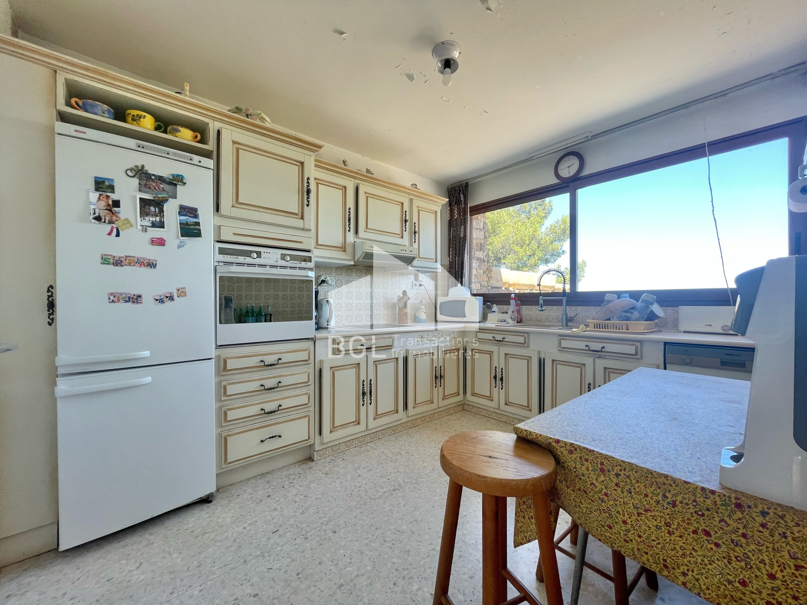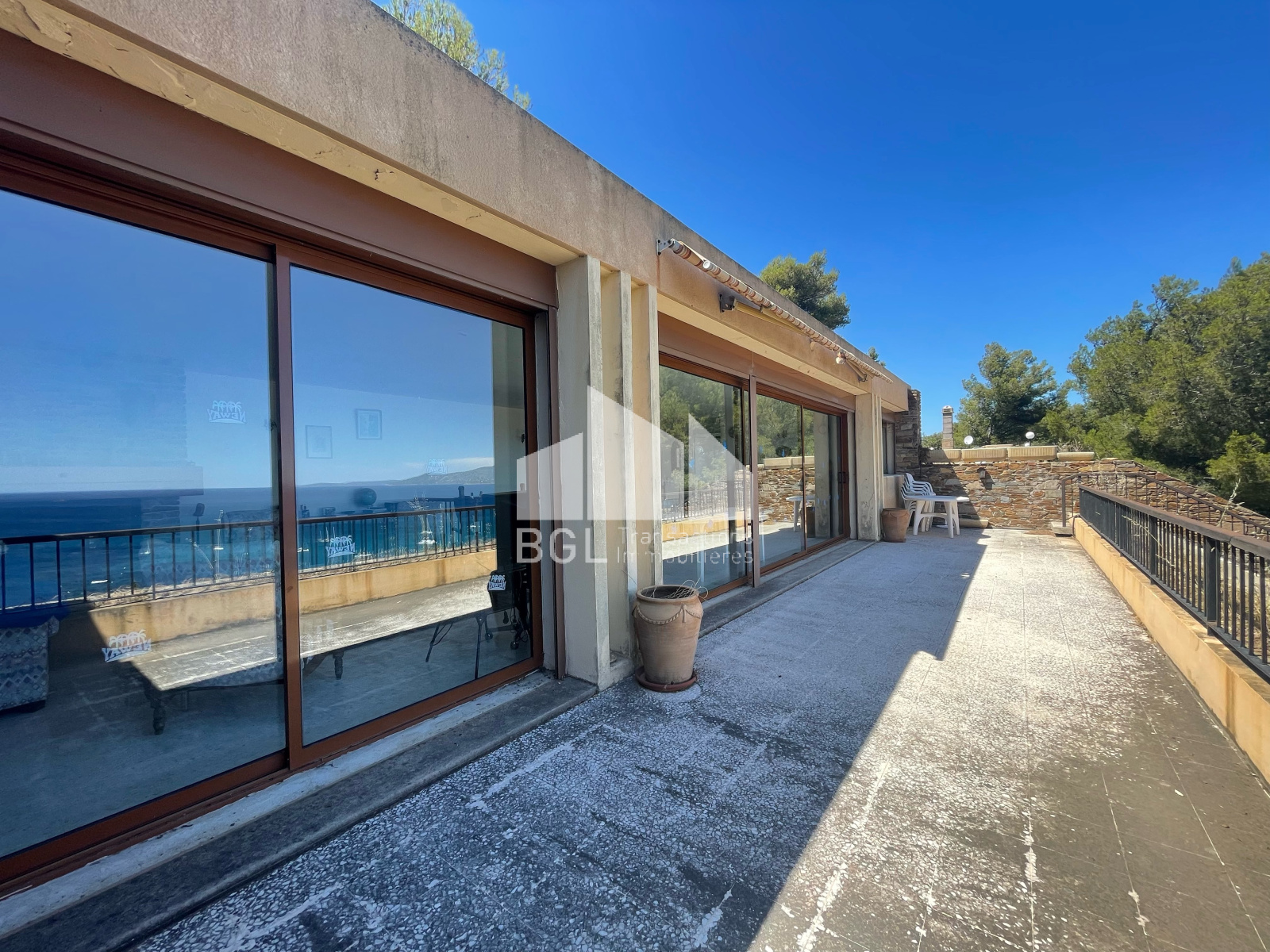 Construite en 1969 sur deux niveaux à quelques minutes de la plage à pieds, la villa d'environ 130 m² bénéficie actuellement de 3 chambres, d'une cuisine séparée et d'un séjour lumineux offrant une magnifique vue sur la mer du Cap Nègre au Cap Lardier.