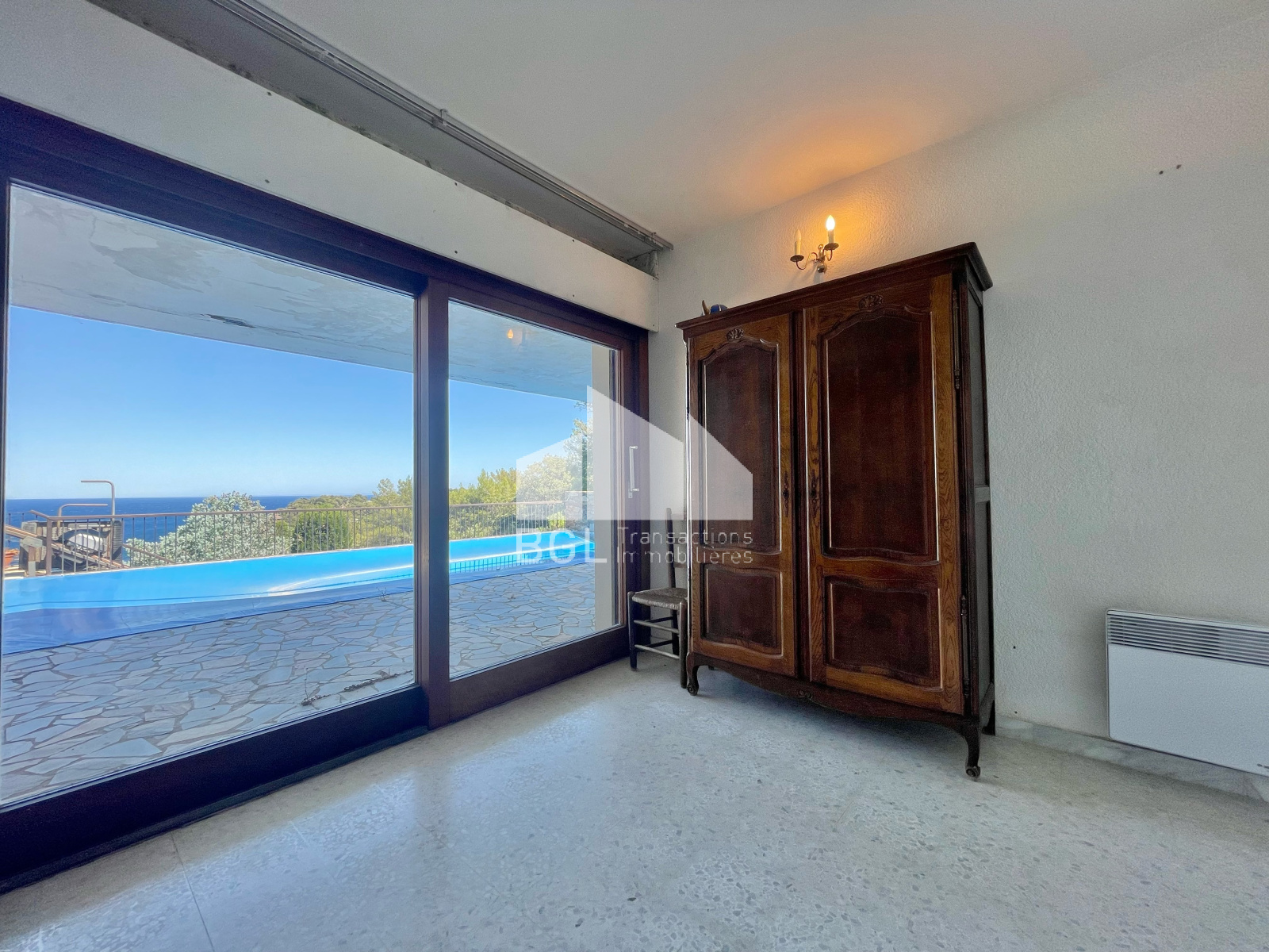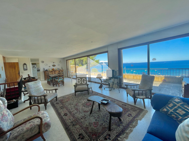Construite en 1969 sur deux niveaux à quelques minutes de la plage à pieds, la villa d'environ 130 m² bénéficie actuellement de 3 chambres, d'une cuisine séparée et d'un séjour lumineux offrant une magnifique vue sur la mer du Cap Nègre au Cap Lardier.