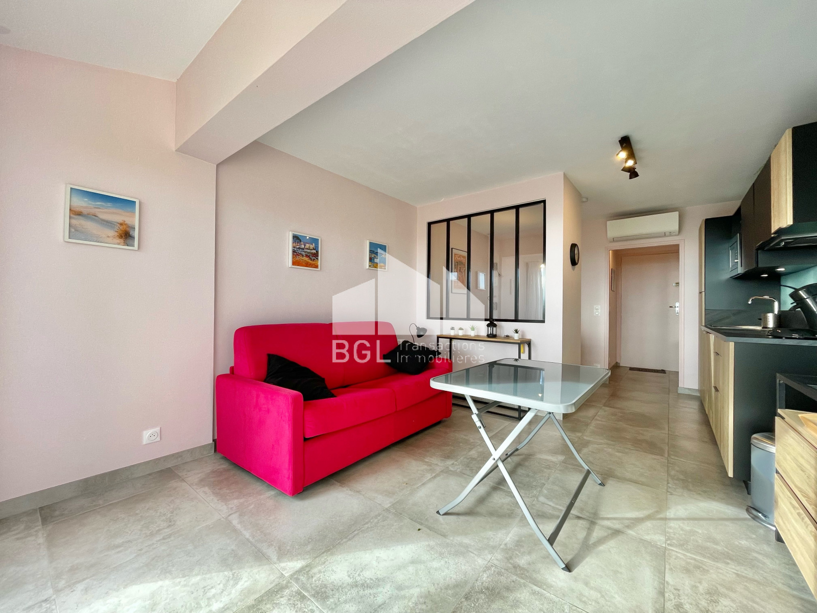 Dans une résidence prisée avec terrain de tennis, studio entièrement rénové de 28 m² bénéficiant d'une très jolie vue mer.