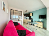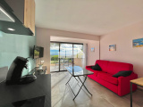 Il se compose d'une entrée avec placard, d'une salle d'eau, d'une cuisine neuve, parfaitement équipé et d'une pièce de vie lumineuse donnant sur une terrasse extérieure avec vue mer.