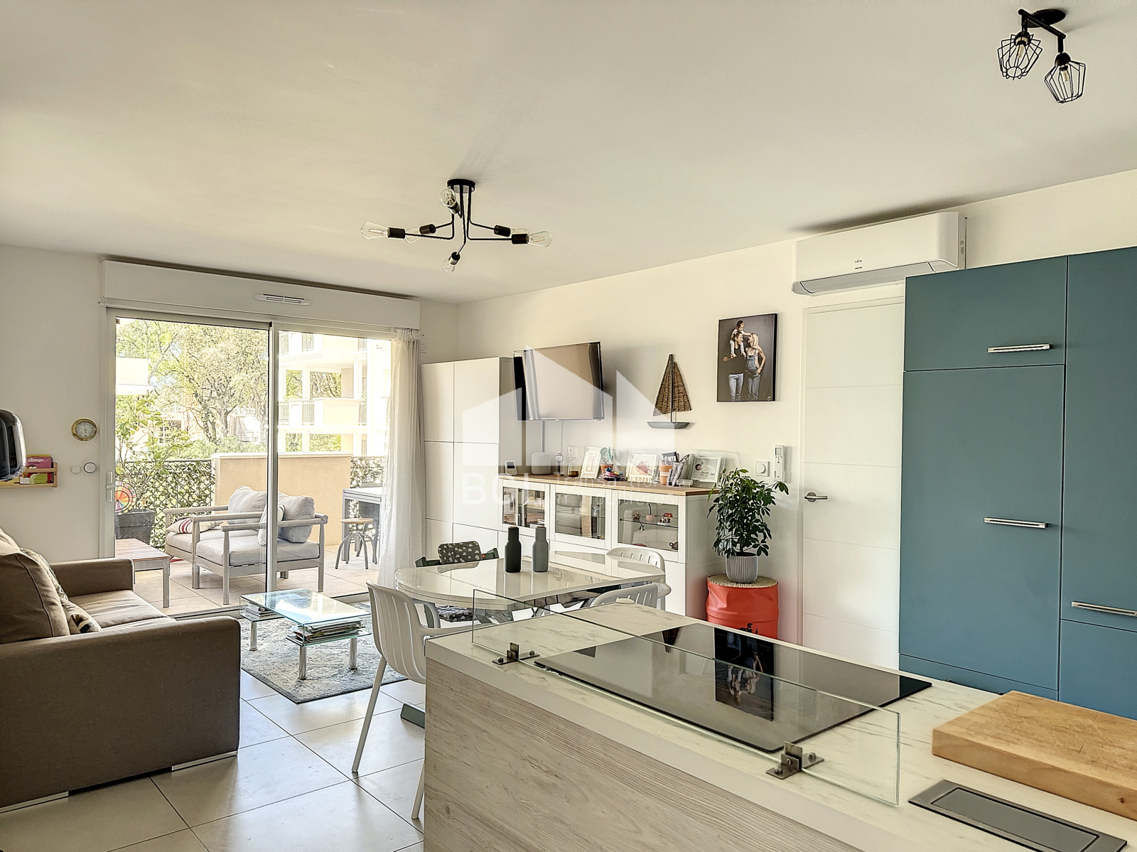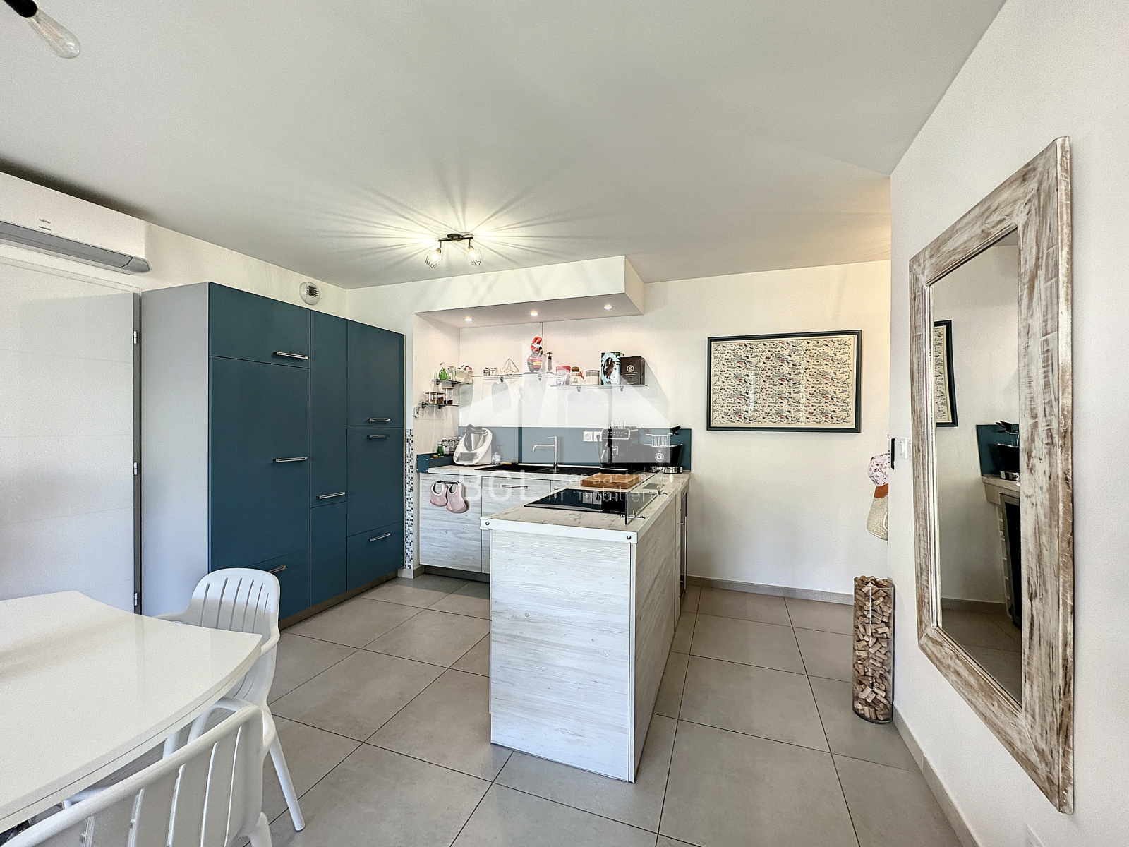 Il bénéficie d'une belle pièce de vie donnant sur une magnifique terrasse couverte, d'une cuisine ouverte entièrement équipée (cave, lave-vaisselle ...)