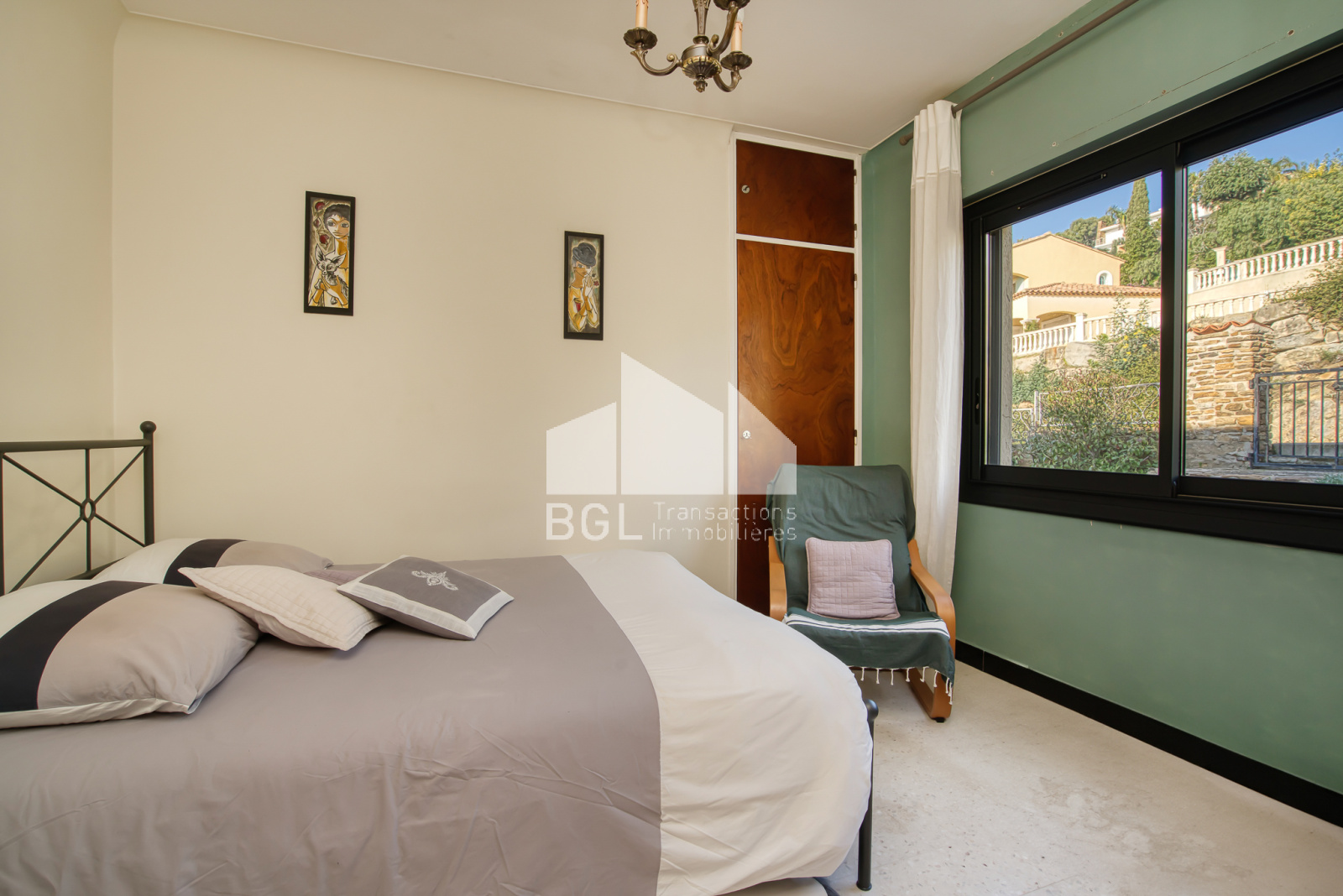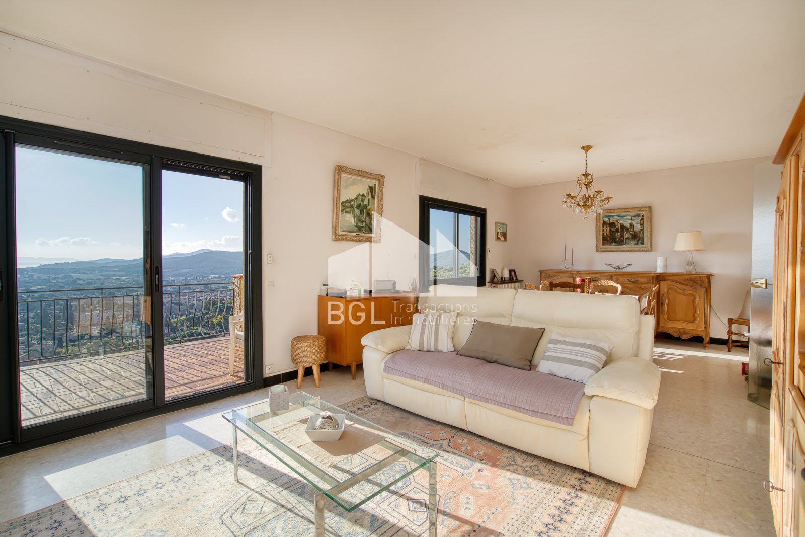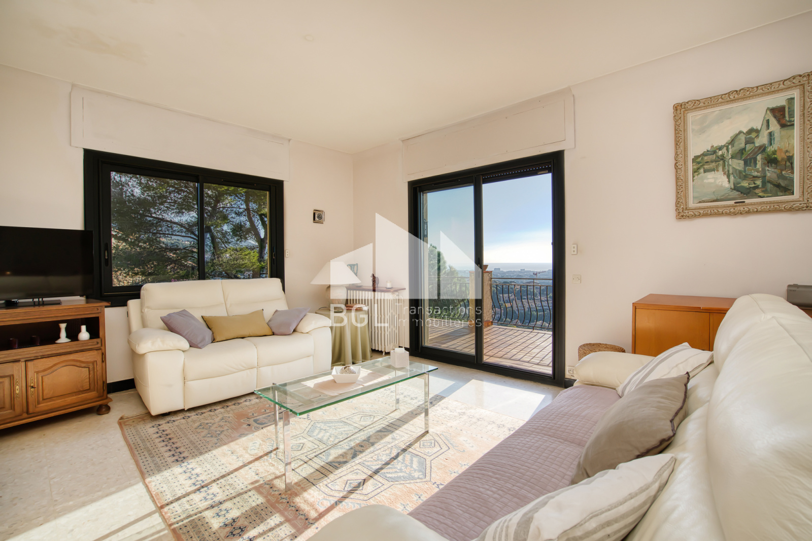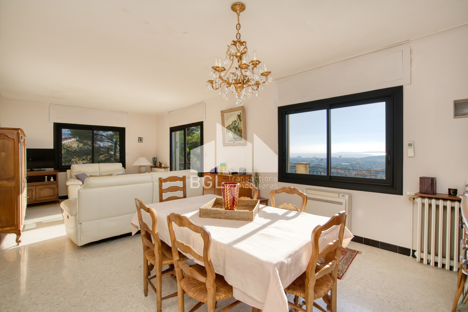 Édifiée en 1966 sur un terrain plat de 1230 m² piscinable, elle dispose d’une surface habitable de 103 m² et d'une magnifique vue sur la mer et les collines