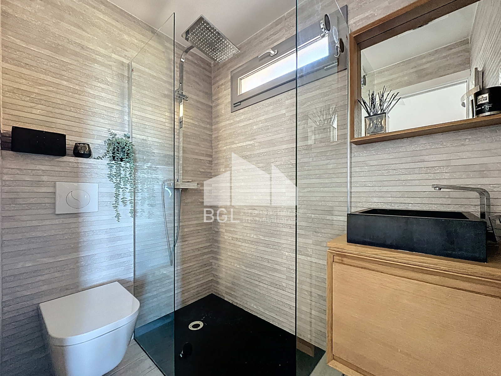 L'accès depuis la ruelle du haut mène à une confortable pièce de vie constituée d'une cuisine séparée parune verrière, d'une salle d'eau avec WC et d'un accès à la mezzanine. Un escalier intérieur conduit à la suite parentale, qui possède également un accès à la ruelle du bas. Chaque espace de cette maison a été soigneusement pensé et optimisé pour offrir confort et bien-être, dans le respect de l'esprit de Bormes-les-Mimosas, classé parmi les plus beaux villages de Provence. Commerces et stationement à proximité.
