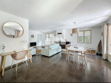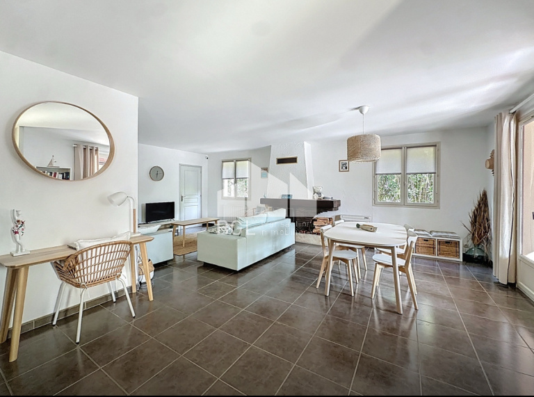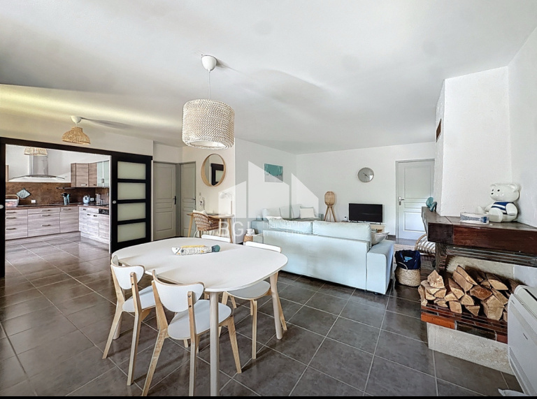 Elle dispose d’une pièce de vie lumineuse, orientée plein sud, avec une vue sur la piscine, parfaite pour profiter du soleil. La cuisine, fonctionnelle et conviviale, s’intègre bien à l’espace de vie, idéale pour recevoir.