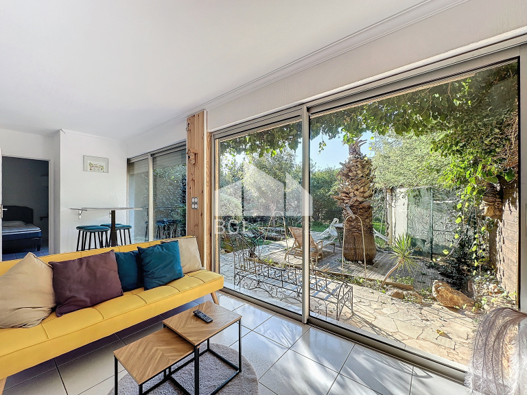 Composée de quatre appartements distincts : un studio en mezzanine, un T2 avec double terrasse, un T2 avec jardin, et un T4 avec piscine.
